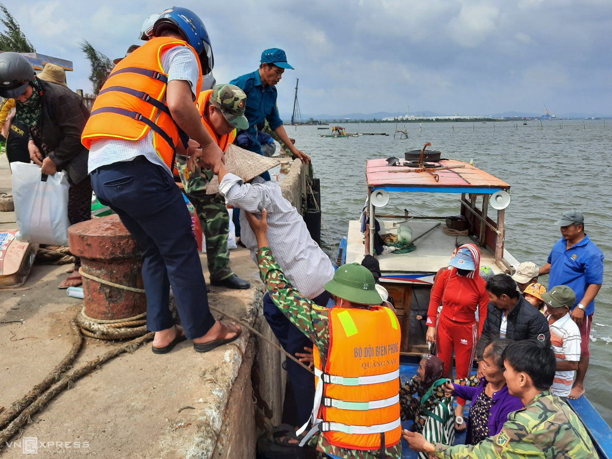Tại xã Bình Hải, huyện Bình Sơn, Quảng Ngãi, từ sáng nay, lực lượng chức năng đã đến từng nhà vận động người dân di dời tới nơi an toàn. Bình Hải là khu vực bắt buộc sơ tán với các hộ gia đình có nhà cấp 4.